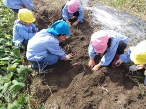本日は、年長組がバスに乗って芋掘りに行ってきました!!