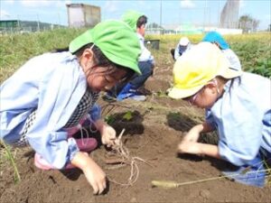 「いっぱいほってみよう」と手を真っ黒にしながら掘っていく子どもたち。