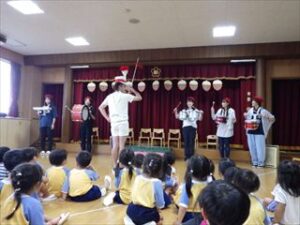 今月は先生たち”くらっぴぃハッピーチーム”によるマーチングが演奏ありました。