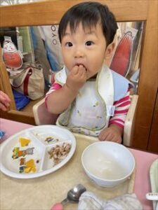 食具を持って食べてみようとする姿も見られるようになってきました。