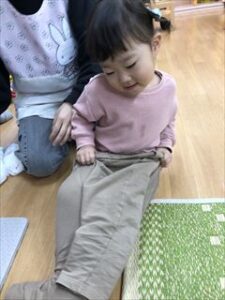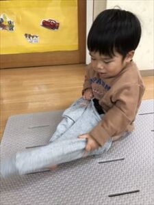 保育者の見守りの中、丁寧にひとつずつ頑張っている所です♪