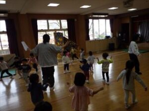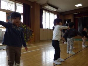 ダンスでは、前で踊っている先生を見て上手にまねっこ!!