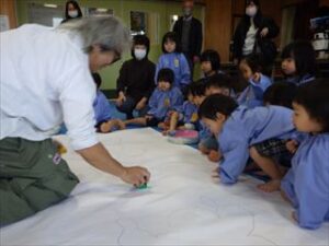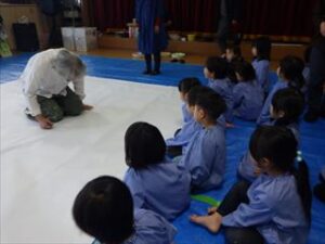 まずは、今日のワークショップの内容をはたさんがお話してくだり、真剣に聞くこどもたち