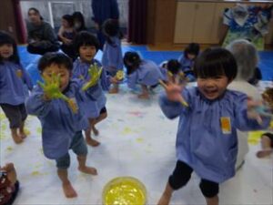 足に絵の具を付けて感触を楽しむ子も!