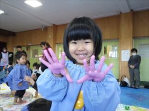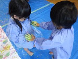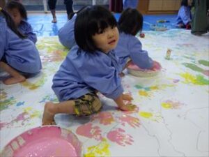 手に付いた絵の具も「きもちいいー」「みてーまざった!!」と嬉しそう