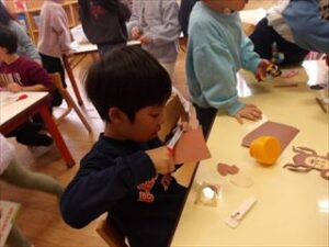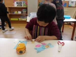 はさみを使って細かな部分を切ったり模様を付けたりと製作を楽しんでいます。