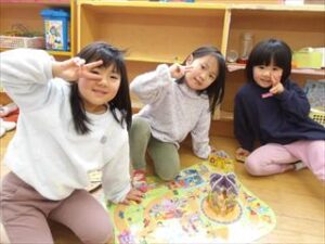 「こっちにこれ付けよ!」「この女の子こっちかなぁ」などお話をしながらパズルをたのしんでいましたよ☆