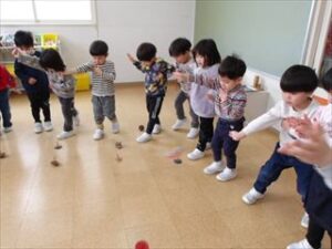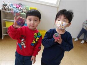 自由あそびの時にも友だちとどっちが長く回せるか競争して楽しんでいます♪