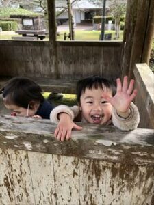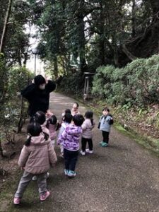 避難訓練後、いちご1組は打吹山にお散歩へ♪