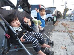 街散歩では、大型トラックを見つけると手を振り、トラックから返事のクラクションを鳴らしてもらい嬉しそうに次のトラックにも手を振り続けていました。